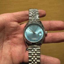 Baby Blue Arabic Watches Unisex Steel Watchband Mechanical Wristwatch Waterproof