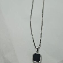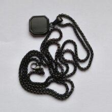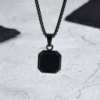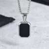 Casual Black Enamel Necklaces for Men,Waterproof Stainless Steel Square Pendant Necklace,Simple Fashion Male Collar Jewelry Gift