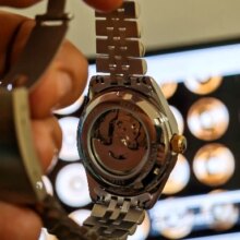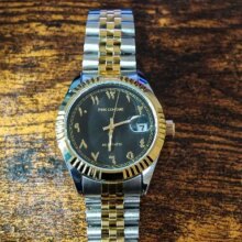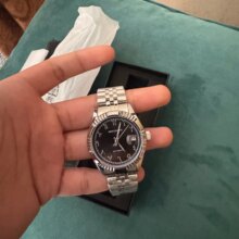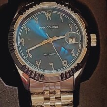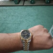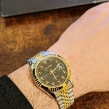 The dial is a bit small, but the watch is pretty. It's similar to the Day Just Combi. Thank you for the fast delivery, and it would be a good idea to change the delivery company in Korea. The delivery driver left the item in front of the package and left it as if it had been damaged. I'm almost tired of it..