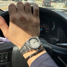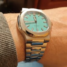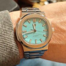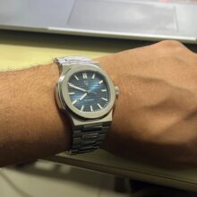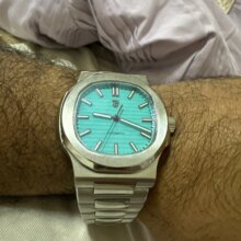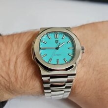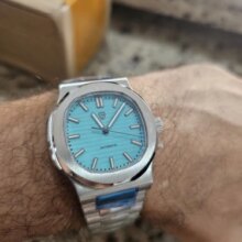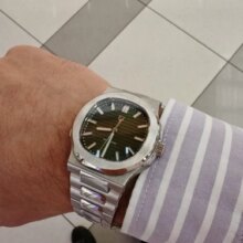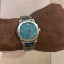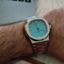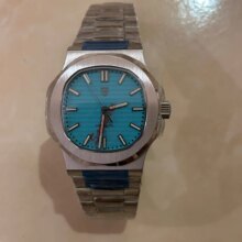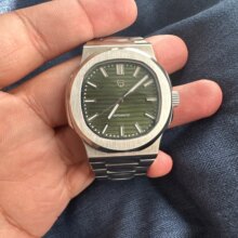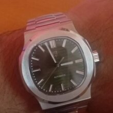 Super nice looking automatic watch. Great homage to the nautilus. Beautiful bracelet and Bright green lume when walking indoors and into the dark