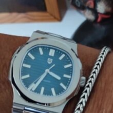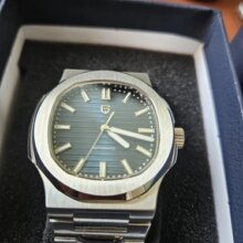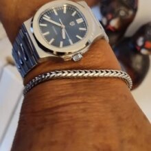 Great design and great feeling on the wrist. The color of the dial is impressive as it changes according to the angle of the light. Overall, really good deal for the money. I would advise the seller to include the tiny screwdriver needed to adjust the bracelet since the pins are screw pins.