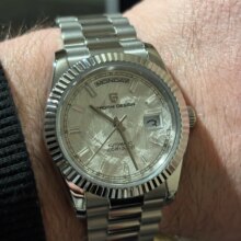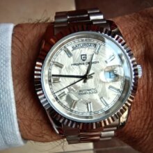 The quality is amazing nothing to fault. I have a small wrist around 5.5inch and the 36mm case size fits perfectly. Only thing is that it's not perfectly centered on my wrist because i had to take all the links out to fit my wrist properly, and the crown was stuck, i had to unwind it a bit to make it loose to the point where it popped out and then only i could adjust the date and time. Overall great look from afar and close.