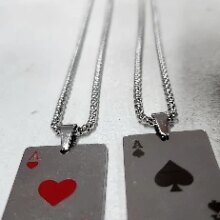 2Piece Set Hip Hop Statement Stainless Steel Poker Card Ace of Spades Necklace For Women Men Pendant Chain Playing Cards Jewelry