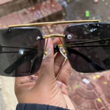 Rimless Square Fashion Fashion Double Bridge Sun Glasses Vintage Women Men Sunglasses